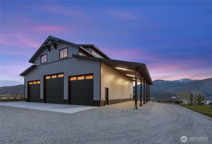 This one-of-a-kind new build at Manson Bluff offers the perfect blend of functionality and beauty. The nearly 50x60 shop on the lower level features 16' ceilings, a bathroom, and heating/cooling, while the stylish 3-bedroom, 2-bath home above boasts 9' ceilings and breathtaking lake views. The upper floor is designed for modern living with an open-concept layout that fills the space with natural light, complemented by light, bright finishes. A deck perfect for entertaining lets you take in the stunning lake views. The lower level includes RV hookups and electric vehicle power. With ample outdoor space and a serene location near Downtown Manson, this property is truly a rare find. Don’t miss the chance to experience this unique property