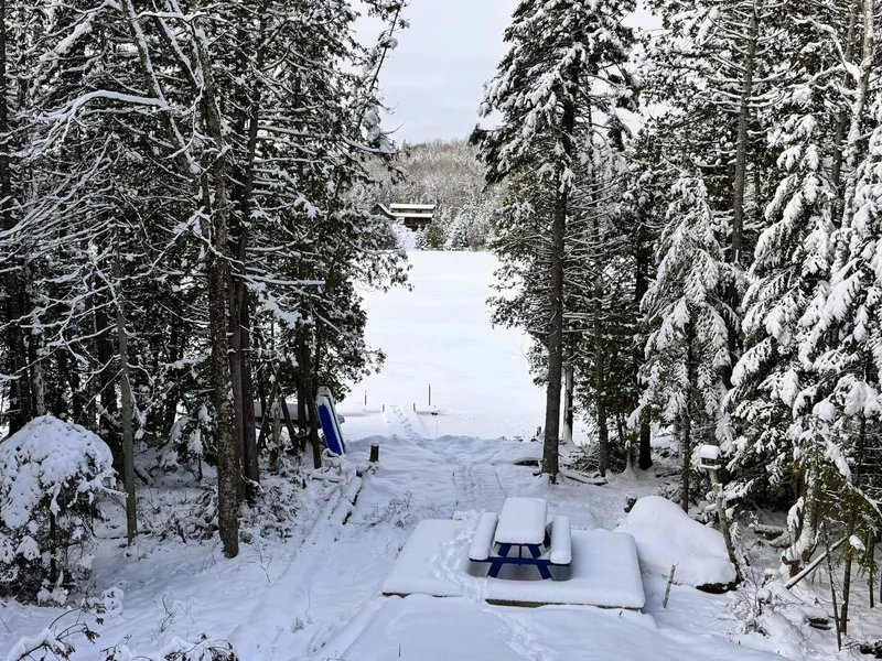 $404 in taxes and 100 feet of OWNED waterfront property on Fish Pond in Columbia. Only 10 minutes from Colebrook, and just over 3 hours from Boston, this waterfront lot includes a 40' fifth wheel four season camper and new shed for the UTV. Lakelife awaits you at this property as you can fish off the dock for trout, swim in the cool water which is 4 feet at the dock, or enjoy the many other outdoor activities that Columbia has to offer like UTV/ATV and snowmobiles trails, hiking in the White Mountains and nearby Dixville Notch. The peace and quiet awaits you and your finishing touches on this property which is perfect for the weekend retreat or the potential to add your own four season camp. The fifth wheel has 4 slide outs, a queen bed, full shower and the sofa is a pull out. A local porta potty company pumps the holding tank once a week during the summer. The camper has AC and heat. A generator and solar panels on the roof keep the lights and refrigerator on, while the propane is used for the gas range. A neighbor plows during the winter allowing access for true 4 season use. Pumped water from the stream is used for showers and dishes.