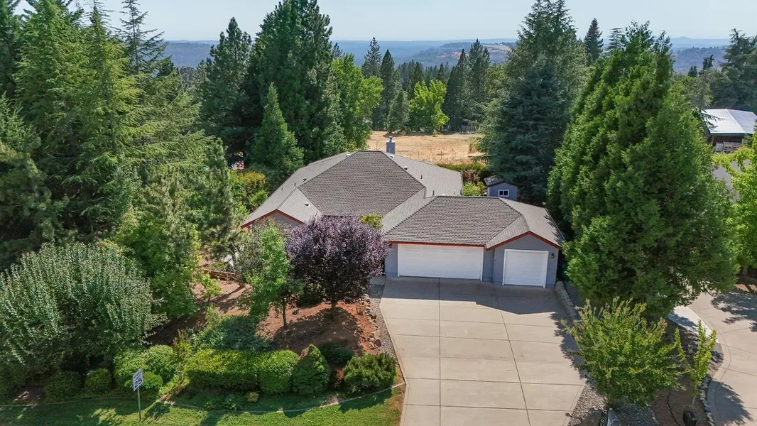 LOCATION-LOCATION-LOCATION! Golf Course View Estates, Camino Hills. Back yard adjoins a 2 acre parcel. Golf course closed, but you can sit on your deck & enjoy the privacy of the open land and incredible sunset views! Clean one story home has 2 bedrooms + an OFFICE(has a closet) 9 ft. ceilings. Great room features a wood stove W/brick hearth for cozy winter nights, wood floors and a wall of windows to take in the incredible views. Open to the Spacious kitchen offering a large garden window, abundant cabinets, pull out drawers, Corian counter plus a Butcher block counter at the breakfast bar. Large primary bedroom w/bay Slider to deck & view! 2 walk in closets, Tub & shower stall. Second bedroom, on other side of home, has a full bath just outside the bedroom. Duette blinds on many windows. Mature trees, Lush landscaping & walkway around home. Gardeners, planter boxes are ready for you to...