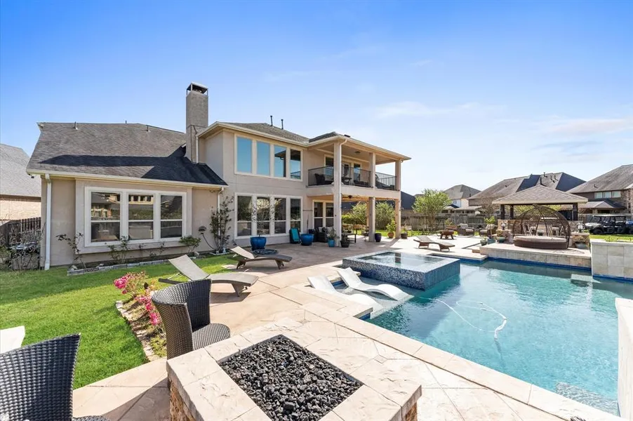 Absolutely gorgeous home tucked away on a quiet cul-de-sac. The stunning stone and stucco elevation will take your breath away. Backyard is a dream come true with a custom outdoor kitchen boasting two mini refrigerators, huge grill, crawfish boiling pot built in counter area, snack bar with bar stools for relaxing. The outdoor kitchen overlooks a nice dinning patio and just on the other side is a sunning area overlooking a fantastic pool and spa. At the far end of the pool is a gas fire pit for those relaxing evenings. The lot is over 20,000 square feet which allows for an abundance of room for fun and games. The house has so many upgrades and exceptional features that it is impossible to list them all. A couple of unique features are the $14,000 Generac power system that is capable of servicing the entire home including both a/c units, and the tinted UV rated windows across the back of the house. If you are looking for just the right family home, you have found it!