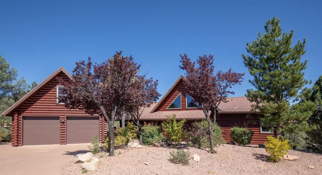 Spectacular log mountain home in Chaparral Pines! Experience log home living at its finest with this 4 bedroom/4 bath home which also has two flex rooms, ideal for additional sleep space, an artist studio, exercise room, game room, office space or whatever your need - One flex space is the loft on the second floor of the house and the other is above the garage. The Grand Great Room has a wall of windows that provides picturesque views to the pines and Mogollon Rim, rustic knotty wood floors and stone fireplace. Step outside to the virtually zero-maintenance Evergreen wrap-around deck and enjoy your morning coffee while looking to the Mogollon Rim and listen the soft sound of wind in the pine trees.