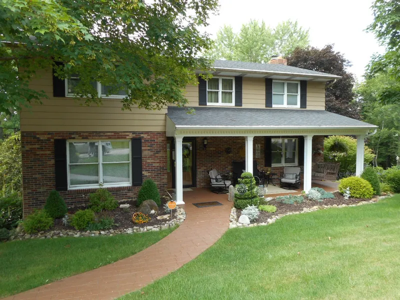 Spacious Quality built home in popular well established neighborhood features 4 BR's, 4 Baths, Main fl Family Rm & Study w/bar area has French doors leading to a large enclosed sun room which overlooks the wooded back yard, Formal LR & DR, fully equipped kitchen & laundry. Lower level features Rec Rm, Exercise rm, & abundant storage. Trane Heating/AC + gas fireplace & wood burning fireplace. 3rd garage has a large root cellar beneath. Plenty of space to entertain family & friends.
