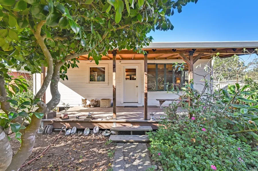 Tremendous opportunity to own a house on the mesa with nearly half an acre of land on a street to street lot. The main house features two bedrooms and one bathroom, a huge garage, and has a kitchen with stainless steel appliances. Lots of redwood was used in construction, including kitchen cabinets, counters and the ceiling. Truly a gardener's paradise, this property has a large green house with papaya trees and a garden with five raised veggie beds. One could conceivably live off the land here, as there are chicken coops and a chicken run, plus an abundance of fruit trees including apple, pear and Mandarin orange. The land does not stop giving with macadamia nuts, blueberries, strawberries, loganberries and boysenberries. The house is on city water, plus it has large water storage tanks to help your garden thrive through the summer months. There are several outbuildings including one that could be a bedroom, office or art studio. This is quintessential, old school Bolinas.
