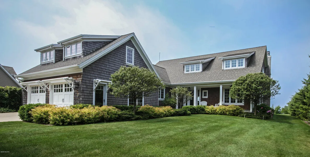 Remarkable year-round home on Lake Michigan with an open floor plan and plenty of windows that welcome in natural light and panoramic views of Lake Michigan. Gather in the gourmet kitchen, fit for a seasoned chef, or relax in the family room or great lakeside porch that spans 34 feet. The main level is complete with a formal living room, great den area, and large main level suite with a full bath. Upstairs another great master suite awaits with a gorgeous dressing area along with three additional bedrooms, a sitting area and a bonus bedroom above the garage with its own bath. The landscaped private yard features beautiful views of Lake Michigan. Traditionally designed, this stately home was made for gathering and enjoying the 88' of frontage that awaits you on the Ludington shores.