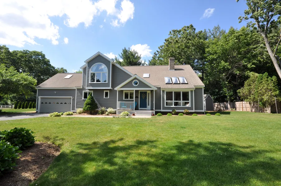 A true family home in every sense of the word! Located on a child friendly cul-de-sac is this striking 12 rm Contemporary. Exciting features such as vaulted ceilings, tall, expansive windows, 12 skylites & both interior & exterior balconies are paired w a traditional floorplan that offers room for everyone . A dramatic FR w lofty ceilings & lots of glass opens to a family eating area & Kit w breakfast island & prep zone. A private office, playroom w deck & bkyd access and formal LR & DR complete this floor. Upstairs are 4 BRs including a primary suite w 3 closets, fp & interior balcony. The lower level boasts ideal flex space: currently used as a game room & add'l playroom, this area can morph into a 2nd office, teenage haven or whatever a family's needs dictate. Walk to the nearby farm stand to pick fruits & veggies & enjoy peaceful nearby conservation land trails & ponds. This quiet, h...