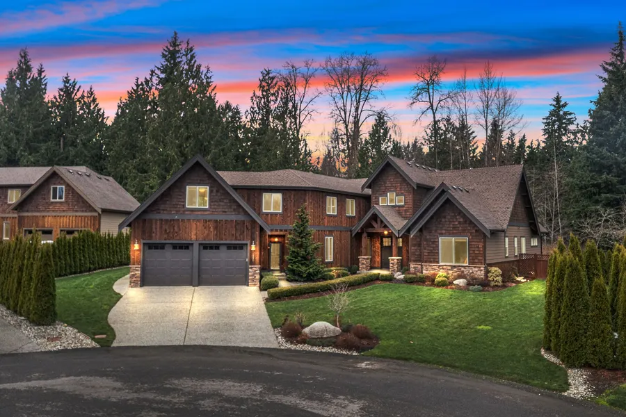 [Remniscent of Suncadia, Vail & Aspen; LUXURY BUILD] Lodge style home built with the highest quality and workmanship, this home reflects the beauty of the park-like setting around it. Nestled in the gated Thomashire Estates in the sought after Lake Stevens Community. 4 bed + office that can be used as a 5th bed! Gorgeous 1/2 acre landscaped lot, PNW covered patio w/ hot tub & mountain views from upstairs. Luxurious feel from the moment you enter with vaulted ceilings, chandelier, wood beam & trim, oversized windows, cozy stone fireplace with built-ins, + chef's kitchen with beautiful cabinetry & center island, WARMTH + COMFORT throughout. Ideal location in top tier school district, EASY access to I-5 & direct access to Centennial Trail.