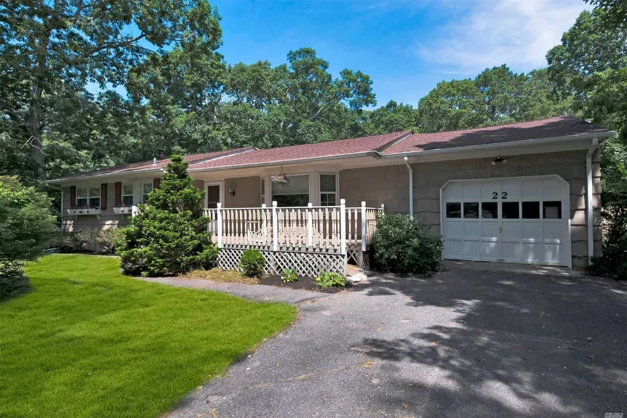 Great opportunity to own this spectacular ranch home in East Quogue.. Offering over 1900 square feet of living space complete with an open kitchen, dining and living area, three bedrooms, two full baths, cathedral family room with brick fireplace, full basement, one car garage, all set upon a park like .46 acres in prestigious Bay Estates. Hardwood floors throughout, new CAC system in 2020, all new appliances in 2017, new roof in 2012. Low taxes,
