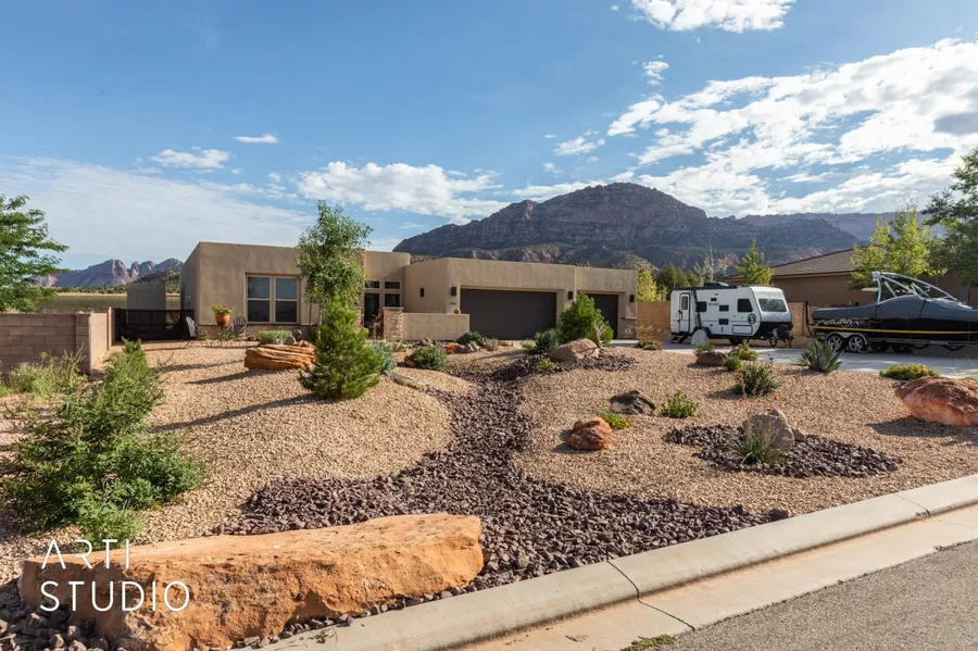 High-end 3-year-old home with gorgeous finishes! Peaceful views that will have you enjoying life from the rooftop deck, living room, or poolside for hours! Large lot, 4 car garage, outdoor kitchen, Koi pond, partial RV hookups, and low maintenance landscape! Centrally located and a short drive from the following: Zion National Park, Bryce Canyon, Lake Powell, and the Grand Canyon!