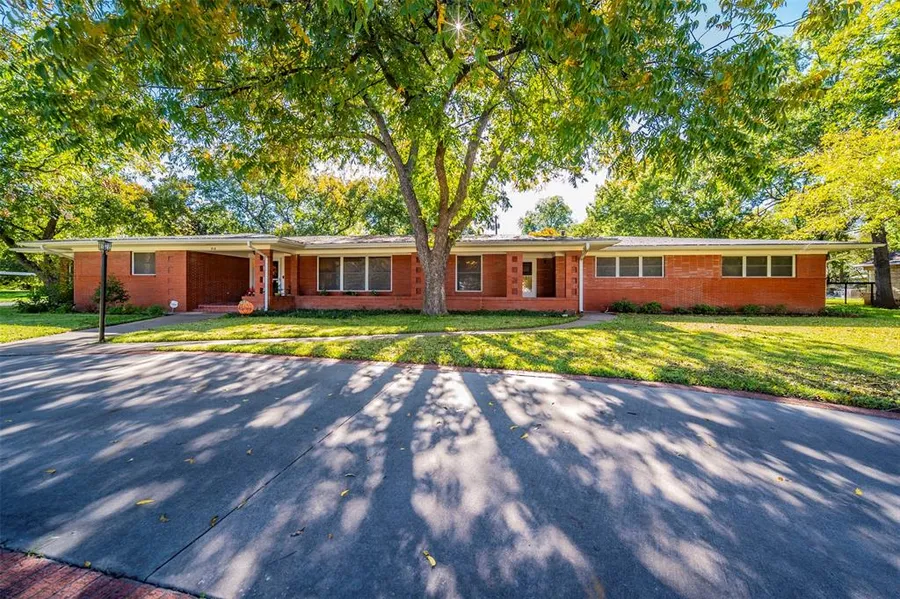 Welcome to this home that effortlessly blends comfort and style. As you step into this Prairie style home you will be captivated by the blend of contemporary living and timeless charm. The heart of the home lies in the large den, where a gas wall fireplace and stone wall become the focal point, creating a cozy and welcoming atmosphere. French doors open up to reveal a patio with fireplace which is perfect for entertaining. The main bedroom is a true retreat, with a door leading directly to the patio.The kitchen is a chef's dream,featuring a central island that not only provides additional counter space but also serves as a gathering point for family and friends;maple cabinetry; ice machine, warming oven, tankless gas water heater,Durastone flooring. The attention to detail extends to the abundance of closets and storage throughout the house.This residence is full of charm and many architectural features. Refrigerator in kitchen stays. Many upgrades throughout! Sprinkler system in yard.
