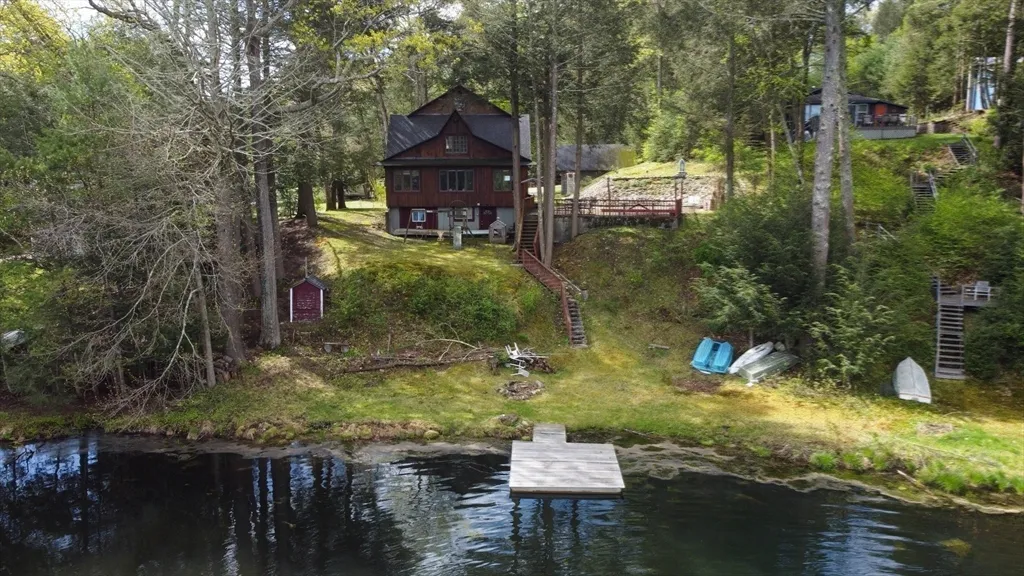 Four season fun in this 2 story waterfront Cape with direct access and a beautiful view of Forest Lake. A lake lover's delight with an open floor plan & Cathedral ceilings. First floor bedroom & bath. Upstairs is a loft with 2 bedrooms and 1/2 bath. Loft area makes a great office space. Walk out basement with laundry area. Plenty of room on the patio to entertain and outdoor cooking in the fireplace while overlooking the lake. Large dock for you to sit on or tie your boat or kayaks and be ready for your spin around the lake or fishing. Relax in the open living room area to eat a meal or just enjoy your peaceful lake view. Place your treadmill in the window for a scenic stroll! The living room is a great place to read or just relax with family and friends. What a way to start your day, sipping your morning coffee and enjoy the lake view. Great memories will be made here for sure!