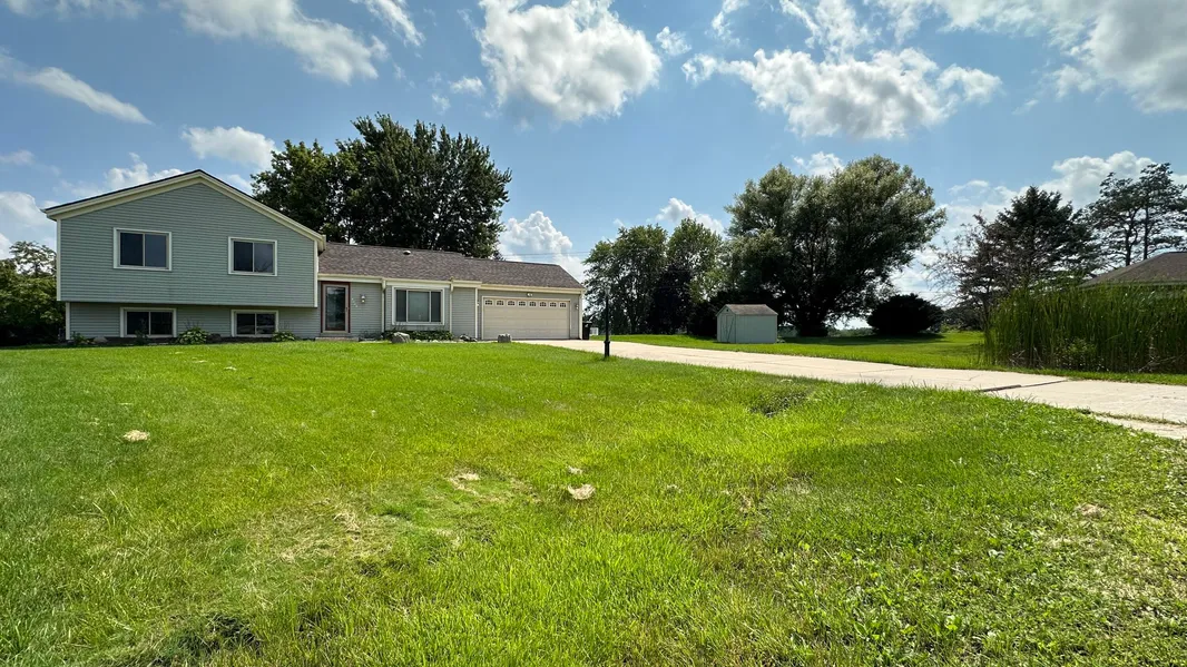 Welcome home to the Golden Meadows neighborhood! This gorgeous tri-level on a cul-de-sac with a brand new roof and HVAC system is sure to please! This home features 3 bedrooms on the upper level with a dual-entry full bathroom off the master and an additional bedroom and full bathroom in the lower level. Walk into your main living level with beautiful vaulted ceilings and an open floor concept shining with natural light. Enjoy your fenced in deck area or your above ground pool without the worry of damage to the low maintenance stamped concrete flooring throughout home. This home also sits on almost half an acre with 2 garage spaces as well as additional parking in the driveway.