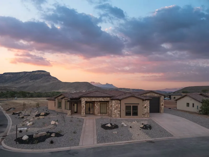 The open floor plan seamlessly connects the kitchen to the dining area and the spacious living room, complete with a collapsing door that brings the outside in. This area is perfect for hosting gatherings with family and friends, offering space for both relaxation and entertainment. No detail was spared through the build process. The kitchen features Taj Mahal countertops, a butler pantry, and complete GE Café Appliances. The primary bedroom is paired with a large shower/tub wet room combo that creates a great space to unwind. Just 15 minutes away from the gates of Zion National Park, 25 minutes to Sand Hollow Reservoir & Dunes, and 30 minutes away from St. George. Come see this home today!