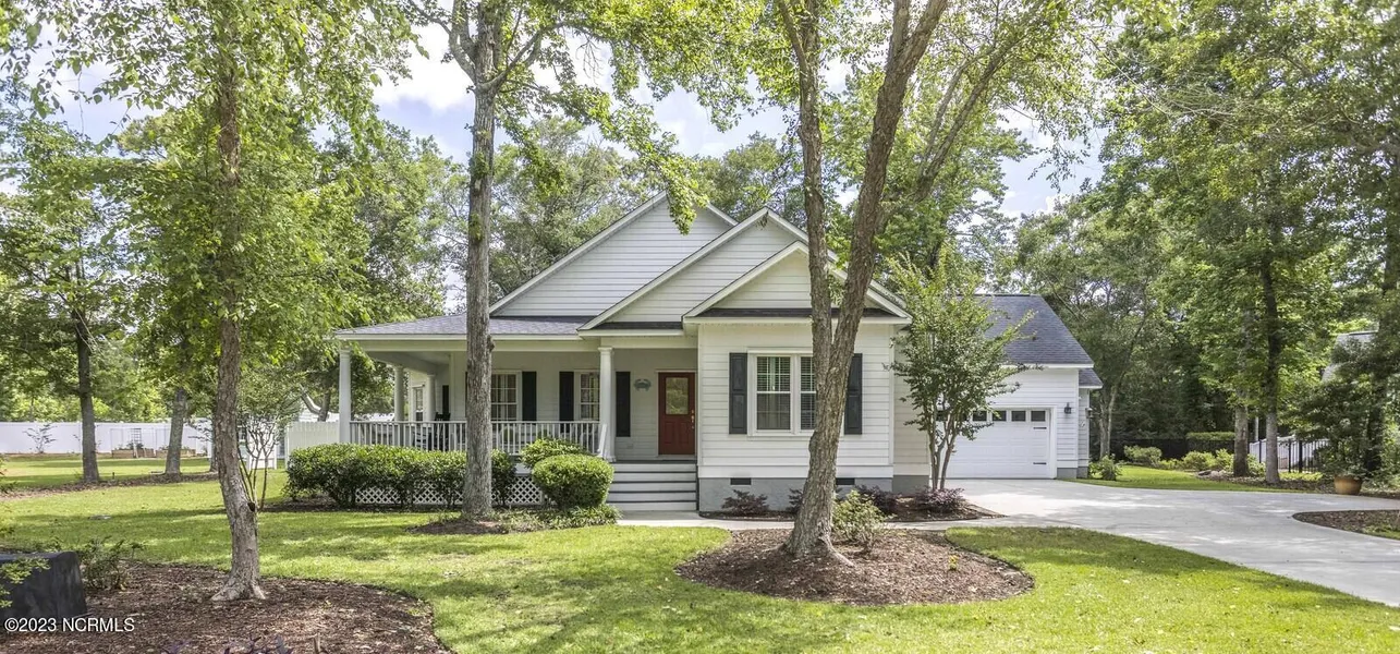 Enjoy the mature trees, azaleas, camelias, gardenias and hydrangeas while sitting on the wraparound front porch or relaxing on the composite deck that runs the entire length of the rear of the home. Or enjoy the views and fresh air from the enclosed Sun Room with direct access to the kitchen and dining room. There are plenty of dining options in this beautiful home: eat-in kitchen, formal dining rooms and several intimate outdoor seating areas. Entertaining family and friends is made easier with the built-in cabinets and shelves in the front Living Room, Dining Room and Kitchen. Solor Tube lights enhance the natural light throughout the home, as well as plantation shutters and roll ups blinds to create your desired environment. The Primary Bedroom boasts 2 closets and beautiful ensuite with double vessel sinks and shower. Each of the 2 other bedrooms flank the full bath with a whirlpool ...