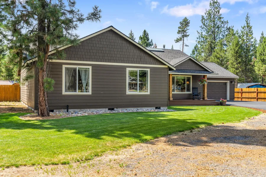 Welcome to 56249 Bufflehead Rd in Bend, Oregon--a meticulously designed single-level home spanning 2112 sq ft. Inside, vaulted ceilings and skylights illuminate the inviting great room centered around a cozy wood stove. The gourmet kitchen features granite counters, stainless steel appliances, soft-close cabinets and drawers, and a pantry, seamlessly connecting to a spacious dining area. The primary suite includes dual vanities, a soaking tub, a shower, and a walk-in closet. Three additional bedrooms share a well-appointed hall bathroom. Outside, the expansive half-acre lot includes RV parking, a large Trex deck with a gazebo, a fenced backyard with a hot tub, a storage shed, and ample firewood. Located near Mt. Bachelor, Sunriver, lakes, and more, residents can enjoy fishing, hiking, skiing, and community amenities such as a boat launch and park area.