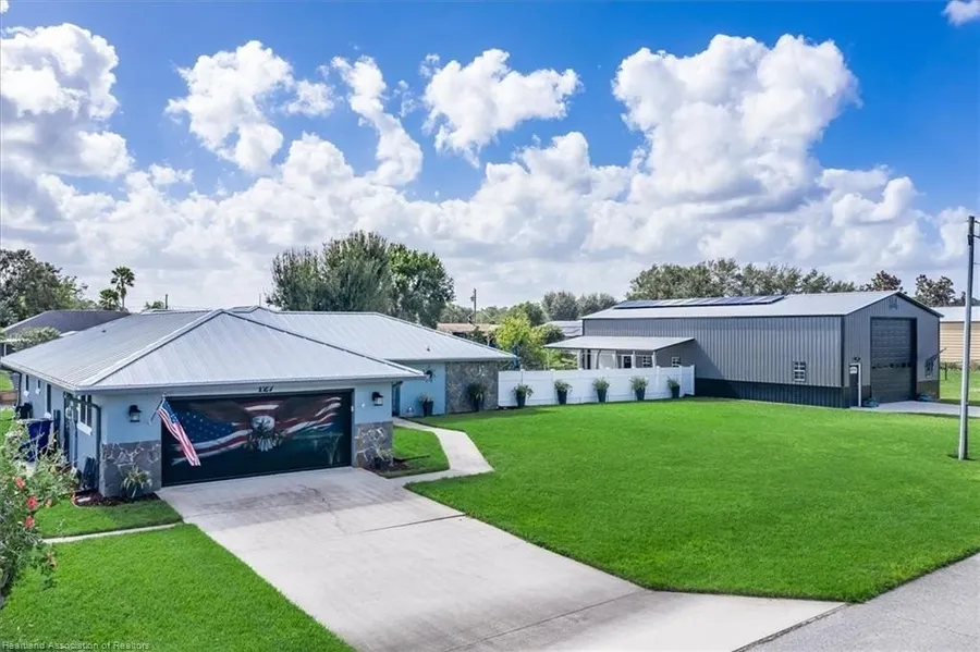 Beautifully updated Ranch-Syle Pool Home and an 1,800 sq ft (30 X 60) garage all with Lake June Access. This three bedroom, two bath ranch home combines style, functionality and luxury. Nestle on a double lot on a canal with direct access to Lake June, this home offers endless amnities for water and outdoor enthusiasts alike. The interior of the home is spacious with an open floor plan with new wood-look tile flooring throughout. The vaulted beadboard ceilings in the living room creates a warm, coastal vibe. The home has a split floor plan with the private master suit on one side and two additional bedroom on the other with their own bath. The kitchen is a dream with ample cabinetry, three pantries, granite countertops and finger print resistant slate appliances. The owner has also updated with energy efficient windows, a new water heater and a charming hand-painted skeeter-beater garage...