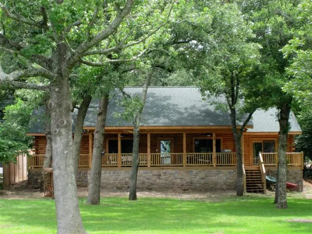 One of a Kind! Stunning four bedroom, three bath Southland log home has a beautiful water front view of Houston County Lake! This quality built home has everything you need and more - game / media room, large open space for kitchen / sitting / living / dining, extra large utility / laundry room as well as a pantry, honed granite counter tops and slate tile back splash in kitchen, Silestone counter tops in baths and laundry room, and beautiful, abundant job built cabinetry. Outdoors, you will love the large covered deck (12 feet deep) off the back of the home with fantastic view of the lake facing Northeast, wiring for speakers on porch and in living room, over sized two car attached garage with additional storage space, irrigation system for flower beds, lots of shore line, bulk head in place, great boat dock, two stall boat lift, fishing pier, sink and storage, kayak storage, and great yard space for outdoor fun! This unique home sits on a quiet, dead end street and is ready for your family!