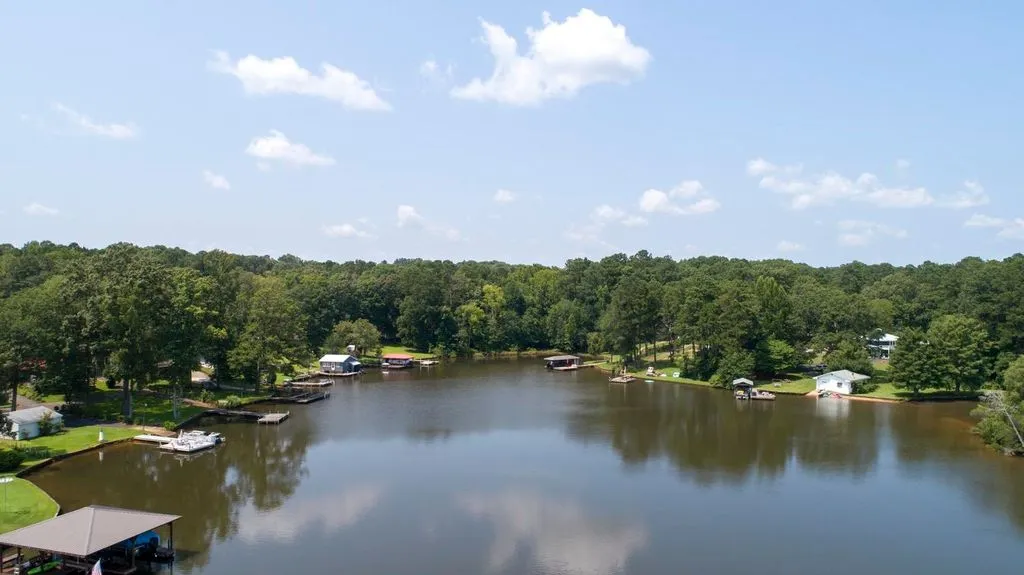 PRICE DROP...Nature lovers take note: private Sinclair lakefront lot adjoining land that will never be developed! A mix of fee simple and residential lease access land. The iconic Big Rock greets you as you arrive on the property - it's your ''personal sized" Stone Mountain! Back of the cove location means privacy and long views - but comparatively shallow water suitable for pontoons, kayaks and personal watercraft (2-3ft at dock site). More than 100ft of private frontage. Gently sloping lot suitable for crawlspace or basement plan. New plat on file. Perc test on file - just bring your builder and make plans to create your own ''Big Rock Cottage".