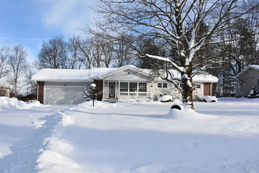Straightforward living in this edge of town long Ranch with updates and additions of a family room with a gas fireplace, a primary bedroom, and a bathroom. Almost 2,400 square feet of finished living space, wrap around deck, paved drive, 2-car heated garage with a handicap ramp, storage shed and a gazebo. Third bedroom could be first floor laundry. Move-in ready, excellent condition. Act quick on this gem - one owner since 1963, extremely well cared for.