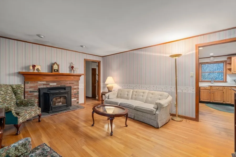 Discover this charming 4-bedroom, 2 full-bath home tucked away on a quiet street. Step inside to find hardwood floors throughout, a spacious living room with a cozy Harmen pellet stove, and a well-appointed kitchen with an island and a pantry featuring convenient pull-out drawers-ideal for both cooking and entertaining. The kitchen leads to a large deck, offering additional space to relax and enjoy the outdoors. The home also boasts a formal dining room and a sunken family room, creating an inviting atmosphere for gatherings. On the main level, there are two convenient first-floor bedrooms, one with a walk-in closet the other with a large closet. Upstairs, the expansive master bedroom includes two walk in closets, providing ample storage space. A walk-out basement opens to the yard, making outdoor activities and garden access easy and enjoyable. Outside, immerse yourself in a gardener's paradise: a meticulously maintained landscape brimming with perennials, flowers, trees, and bushes.