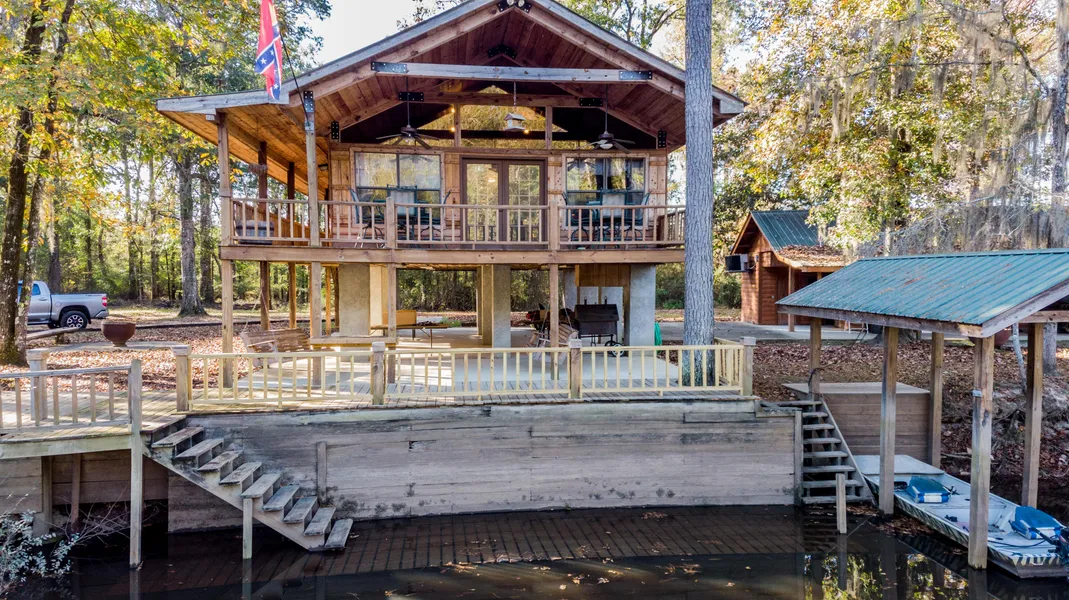 If you have been looking for the perfect getaway, this is it! This beautiful Ogeechee River retreat is located just a few miles outside of Midville, GA in the Coleman Lake Community. This A-Frame cedar home features decks and a patio overlooking the the Ogeechee River, a boat house, and plenty of space to entertain. The interior brings great craftsmanship to a whole new level! Towering ceilings, open concept, and a stone fireplace give this home a warm country feel. There is a spacious kitchen area, master bedroom/bath, and a loft area used as a second bedroom as well. Another amazing add on to this property is the log cook house. This is a great place for gatherings with a small kitchen area, ice maker, and half bath. This property is selling FULLY FURNISHED! The listing includes lot 6 and 7 on the river and lot 11 just across the street. Lot 11 is cleared and has a camper hook up as well. It is time to make this turnkey retreat yours! Give us a call for a tour.