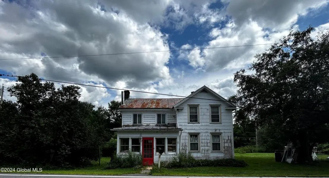 Step back in time with this partially restored home built in 1864, where history meets comfort. The owner's vision shines through the exposed wood beam ceilings that echo the home's storied past. The kitchens display of Venetian plaster walls and a vintage-style stove paired with the time period-appropriate paint, and soon new flooring establishes the warm, inviting heart of the home. Upstairs, a new bathroom is underway, complementing the fresh floors in the existing one. Bedrooms feature tasteful accent walls, evoking its unique character. All of these features offer a unique blend of historic charm and cozy living, ready for you to pick up where the seller left off and add your personal touch.