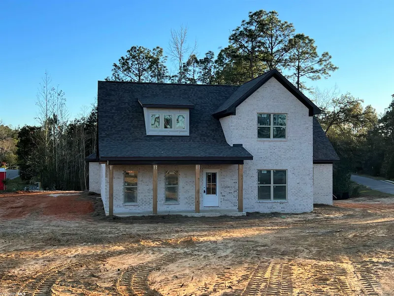 Welcome to Quail Creek Estates new construction home built by CALLOWAY HOMES LLC. 1.5 stories and 2547 Sq-ft this home sits on a huge .5-acre lot. This home is spacious, tall ceilings with an open floor plan with a fireplace in the living room and one on the back porch. The home consists of hardwood floors in the main living room, carpet in bedrooms and tile in the baths and utility room. This home includes a gas range, dishwasher, and microwave. The yard has an irrigation system, and the home is equipped with a tankless water heater. Walking into the master you have his and hers sinks, walk-in closets, soaking tub, and separate shower. Granite Countertops throughout the home. This floor plan has a separate dining room. The kitchen cabinets are locally made and painted that also have soft close slides and hinges. Come enjoy this beautiful home where you can go play a round of golf, enjoy the walks around the neighborhood or go downtown Fairhope where you can shop and enjoy the amazing restaurants everyone loves. Estimated completion February 2022 with NO HOA FEES! All information provided is deemed reliable but not guaranteed. Buyer or buyer?s agent to verify all information.
