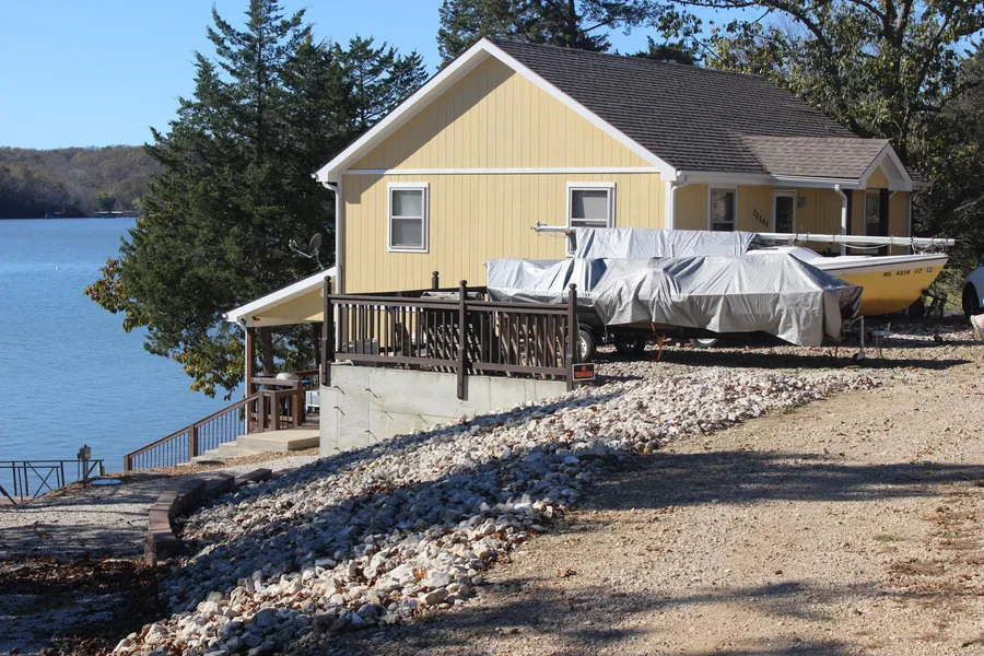 Newer move in ready home plus many furnishing. Open kitchen and living room floor plan with on lower level over looking the beautiful Lake Of The Ozarks. Upper level with 9 foot ceiling has master with bath with (heated floor) large walking closet plus two guest bedrooms ( heated floor in guest bath.) Maintenance free lawn no mowing. lots of parking plus a extra lots for parking or building. Dock is only a few steps away from the house. Large separate storage container 8 x 40. This home has so much to often you must see to appreciate.
