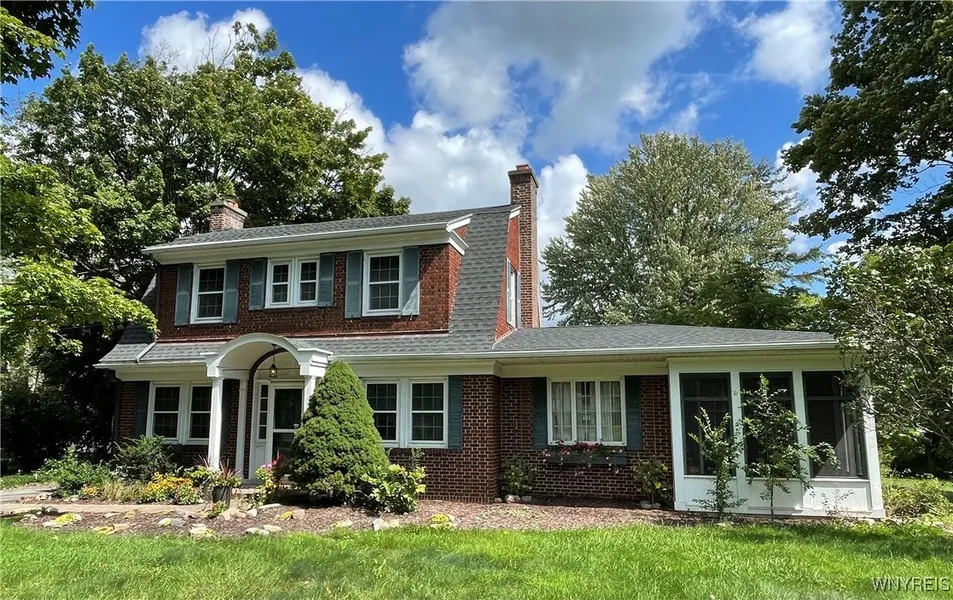 Must see! Quality construction in a traditional center-entrance home set on lovely deep lot. Beautiful craftsmanship, wainscoting, details. Gorgeous wood floors on first level & whole upper story. Home is flooded with wonderful light. 1st floor has formal dining room and gracious Living Room w/elegant woodburning fireplace. A pretty passageway leads to the deck & to an appealing, multi-purpose Family Room featuring handsome library wall;FamRoom opens to a sweet screened patio. 2nd floor has four Bedrooms & full Bath. The principal Bedroom is huge in size with windows gracing three walls w/a pretty view to backyard & distant Carriage House. It boasts 2 walk-in closets (1 perfectly-situated for future ensuite bathroom). There are 3 other bedrooms with good closets & storage. The home has been lovingly maintained. Full basement & stand-up attic w/pull-down stairs show a house constructed “the way they should build them.” Kitchen has wonderful cupboards & built-ins, with large footprint, open to possibilities. Updated electric, beautiful grounds. Great Location w/Iroquois Central Schools. A happy home, ready to welcome new owners!