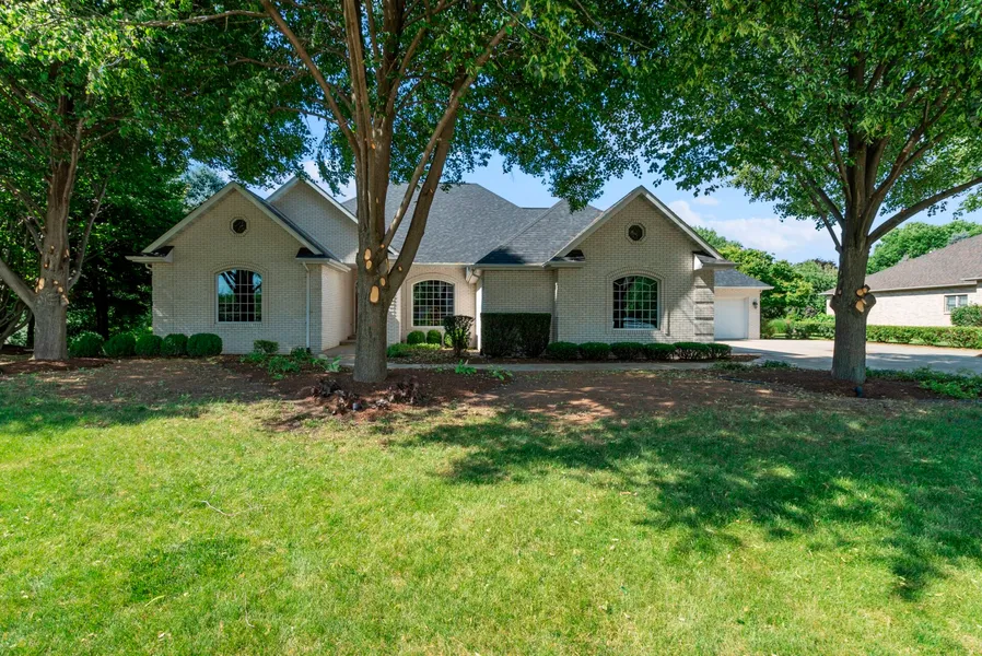 Wake up every morning and end each day with a gorgeous water view! This magnificent brick ranch was custom built by a local reputable builder. This 3 bedroom, 4 bath home is over 3,000 sq. ft. and the attention to detail is very impressive . When you enter the home your eye is drawn to the living room and the soaring stone fireplace flanked by two palladium style windows overlooking the lake. The dining room has a beautiful wooden architectural tray on the ceiling and glass front cherry built-in. Natural light is in abundance with sizeable windows throughout the home. The spacious kitchen also hosts view of the water. Timeless, custom cherry cabinets and neutral solid surface counters are the perfect place to prepare meals and host gatherings. The large master suite with it's pristine hardwood floors and double tray ceiling includes a sitting area and master bath. The master bath has a d...