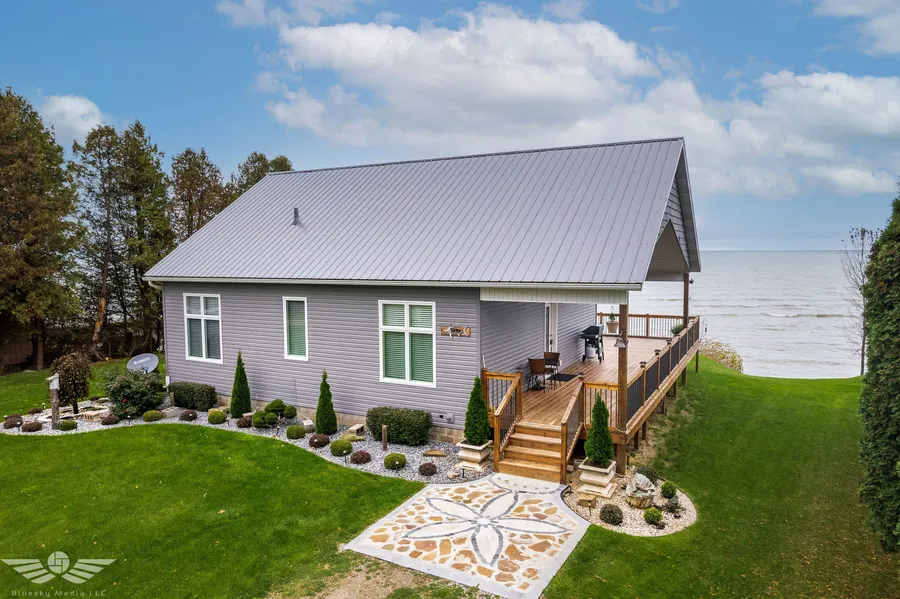 Million Dollar Views! This extremely well built, lakefront home with over 100' of frontage on the gorgeous Lake Huron is only 5 years old and is absolutely perfect, inside and out. You will love the open floor plan, elegant lighting throughout and the unfiltered, lakefront views from most rooms. The living room has a built-in electric fireplace that will give you that warm cozy feeling on a chilly evening. You will certainly enjoy the large wrap around deck, a portion of it is covered...perfect for shade on those hot, sunny days or cover on a rainy day. Also outside, check out the beautiful custom cement work that was designed and installed by the Sellers. BONUS, included in this sale is another full lot that is directly across the private road with a 32 x 40 pole shed...wonderful space for your vehicles, lawn furniture and all of your lake "toys". Check out the photo tour, then call to schedule your viewing appointment TODAY on this magnificent, lakefront property!