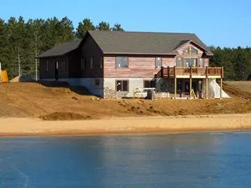 -Main level: 1452 sq ft -Walkout lower level: 1252 sq ft -Mechanical room: 132 sq ft -Lakefront Deck: 200 sq ft -Covered entry porch: 36 sq ft -Garage/Storage: 664