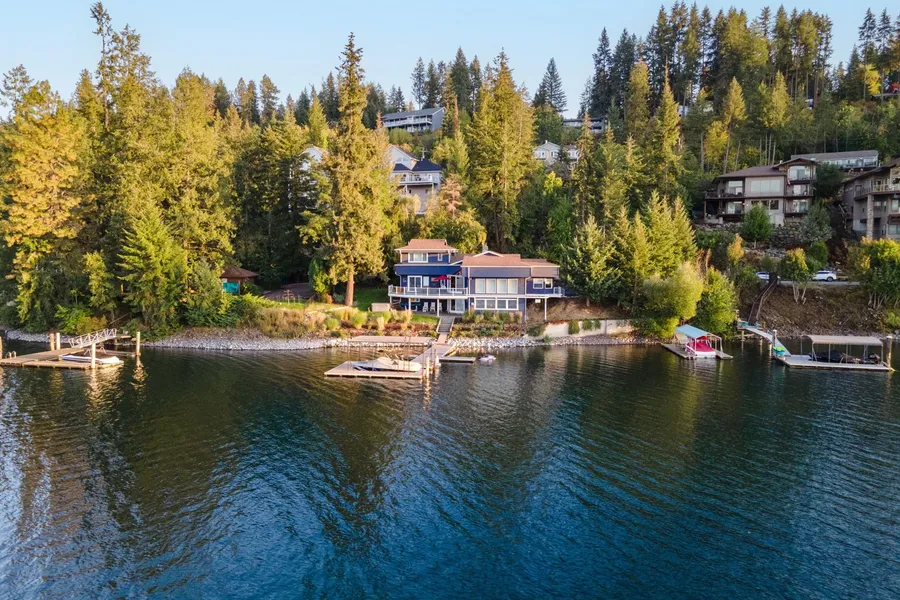 Stunning in town, Hayden Lake waterfront property located only steps to the water's edge of Hayden Lake where crystal clear lapping water awaits. This beautifully remodeled home offers 3,416 sf, 4 bedrooms, 3 bathrooms and 185' of water frontage in Honeysuckle Bay with level access, artfully landscaped yard with mature trees & shrubbery providing privacy, boat slip, 2 car attached garage & 1 car detached carport providing ample parking, formal dining area, family room and relaxing Hot Tub. Home has gorgeous custom wood detailing throughout with T&G ceilings and walls and brand new hardwood flooring, expansive window surround showcasing the magical water scape of Hayden Lake, the views are infinitely spectacular! This home also offers an appealing open floor plan with the living area, kitchen and casual dining area perfectly situated around a floor-to-ceiling brick fireplace creating a wa...