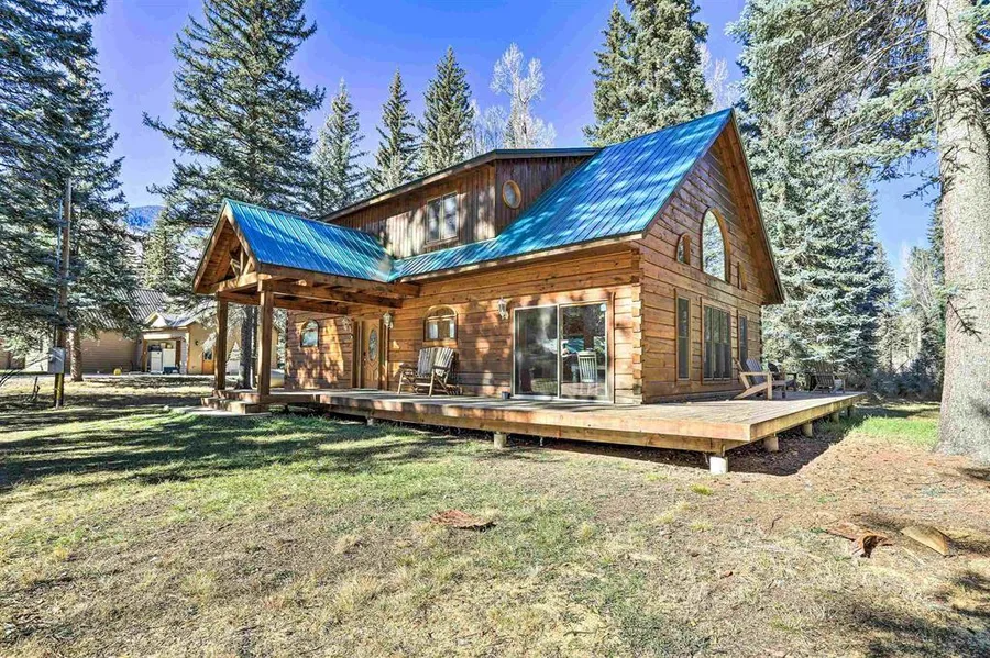 Tranquil and alluring Vallecito property is a perfect vacation spot or fulltime home in beautiful location just north of lake in soothing, wooded setting. Offered as a totally turnkey vacation rental opportunity with reservations and property manager in place, this home comes furnished and has all of the comforts of a primary residence plus all of the amenities needed for vacation rental visitors. Lots of light, open floor plan with primary bedroom suite on main level, wrap around deck, 2 car garage, recently updated roof, furnace, insulation, water heater, tiled entry. Small seasonal creek on the property. Terrific kitchen is appointed with stainless appliances, granite veneer countertops, pantry, disposal, guest conveniences. Quality furnishings include collected antique mountain style decorations, solid/attractive furniture pieces, river rock wood burning fireplace, real wood paneled ...