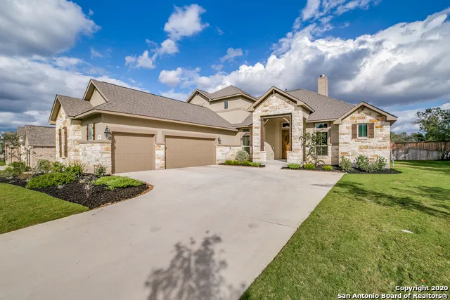 Completed in December of 2019, this gorgeous home lives like a single story, with a bonus room and half bath located on the second level. Designed with entertaining in mind, the light-filled, open layout immediately welcomes guests with chic details such as wood-look ceramic tile floors, a timeless neutral color palette, and thoughtfully placed windows. A formal dining room and private study flank the entryway, ideal spaces for hosting and working. Acting as the true heart of this home, an expansive living area showcases a beautiful, floor-to-ceiling stone fireplace, tray ceiling, and lush backyard views. This space flows seamlessly into the premier kitchen with unique tile backsplash, rich cabinetry, gas cooktop, stainless steel appliances, pendant lighting, breakfast nook, and expansive island with casual bar seating. The spacious master suite features a wall of windows, walk-in closet...