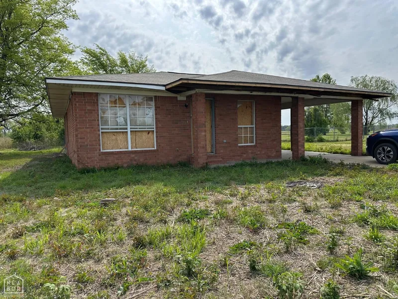 The house is 3 bedroom 1.5 bath with a master and 1066 sqft. It had new roof and boards put on 4 months ago. Investor friendly come in to redo to make it a beautiful house again. Corner lot with half acre back yard is chain link fenced.