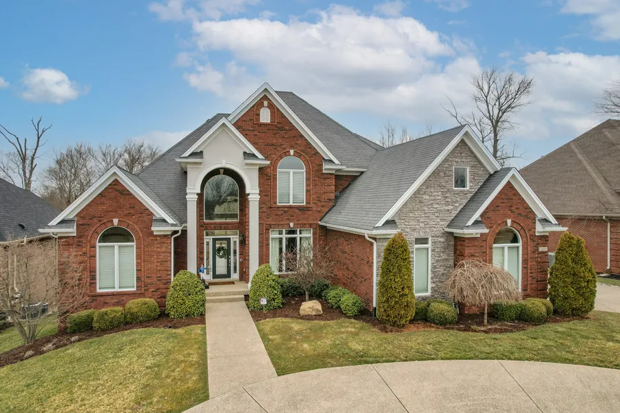 Like New Construction. Updated Longwood home offers desirable Goshen neighborhood. This stunning 5 bedroom, 4.5 bath walkout home is located within walking distance of the North Oldham campus and offers a neighborhood pool, clubhouse, and tennis courts Recently updated and offering a fresh interior, this home is move-in ready and is perfect for easy living and entertaining. Upon entry the beautiful refinished floors feature a stunning custom design adding a touch of elegance that defines this home. A dramatic two story great room brightened by a palladian style window opens to the recently remodeled kitchen featuring new white custom cabinets, a center island, quartz countertops throughout, new lighting, a service counter, and new gas range with decorative hood. The hearth room is warmed by a gas burning fireplace, opens to the kitchen area providing space for informal dining or seating. Detailed moldings finish most rooms throughout. A screened porch adjoining the hearth room is perfect for enjoying the outdoors.The formal dining room with a rich wallcovering and an elegant chandelier is perfect for entertaining guests on special occasions. A first floor office is tucked away off the main foyer areas offering a private retreat. The first floor primary bedroom is freshly decorated with paint and new carpet, and offers a spacious primary bath featuring a new vanity and quartz countertops. A freshly decorated first floor laundry room is located between the kitchen and the garage. The second floor includes three large bedrooms, one with an ensuite bath and the other with a connecting bathroom, all recently carpeted. An upstairs study is an ideal study or play space for children. The lower walkout level is perfect for casual living. New flooring finishes the main living room and bar/recreation area. The bar area was remodeled adding a bar counter, and new Frigidaire wine cooler, Samsung refrigerator, and microwave. A theater room is ready to customize for at home entertainment. A fifth bedroom in the lower level is very generous and could hold two queen beds easily. A full bath finishes the finished living space downstairs. An outdoor patio space is ideal for enjoying the scenic backyard. All toilets and bathroom hardware have been replaced in the home as well as the first floor half bath vanity, mirror, and lights. There is a three car garage and a large circular driveway offering ample parking for guests. Irrigation system in front and back, security system and fenced back yard. This one won't last!
