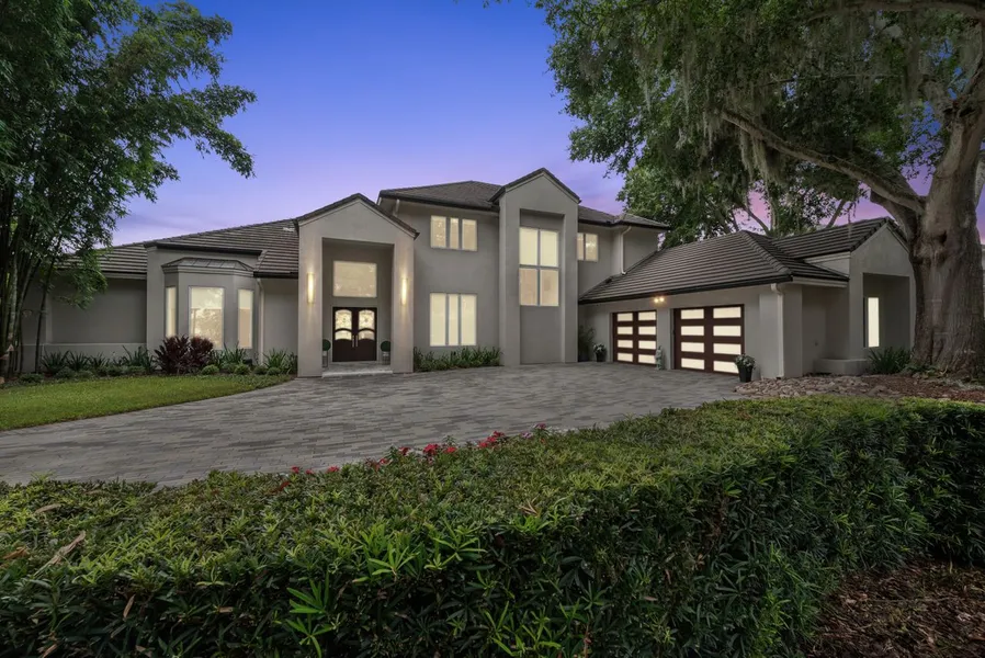 Water and Golf views illuminate this unparalleled luxury home. Fully remodeled five-bedroom pool home within the distinguished Isleworth Golf Community, ideally situated along the 12 hole of the championship Arnold Palmer designed golf course. With exquisite marble flooring throughout, this stunning residence offers breathtaking views of both the golf course and tranquil water. The open-concept design seamlessly integrates formal dining, elegant living area, a spacious family room featuring an LED built-in fireplace, all flowing into a beautifully appointed gourmet kitchen. This culinary paradise showcases Wolf stainless steel appliances, custom cabinetry, walk in pantry and an impressive 10 foot polished marble center island. High-end appliances include a convection steam oven, a built-in commercial-grade cappuccino machine, and Sub-Zero standalone refrigerator and freezer, all complemented by spectacular vistas. The first floor primary suite serves as a true sanctuary, featuring wood floors, a generous sitting area, a cozy fireplace, and direct access to the covered lanai. The luxurious primary en-suite boasts a large soaking tub, a rain shower and dual shower heads and a dedicated "Get Ready" area. The custom closet is fit for a fashionista, complete with bespoke cabinetry, glass doors, and LED lighting to elegantly display your finest fashion pieces and handbags. On the main floor, you'll also find a guest bedroom with an en-suite bath and an impressive 1,000-bottle chilled wine room, perfect for connoisseurs. Upstairs, three additional bedrooms and a balcony offering panoramic views of Hole 12 and Hourglass Pond. The double-door flex room can serve as a gym, theater, multi-use room, or playroom, providing endless possibilities. Unwind in the fully tempered Solarium Sanctuary, where you can relax with your favorite beverage and watch the stunning sunset.