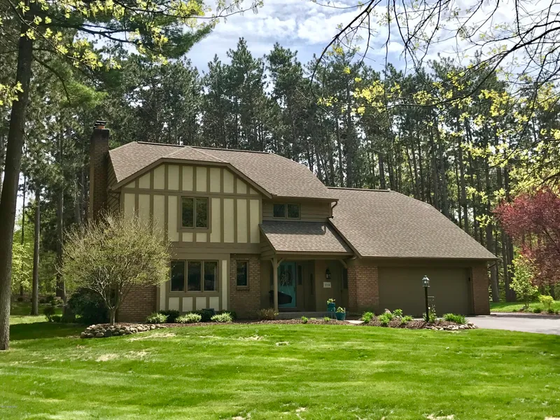 Grand Haven Golf Course is a beautiful setting for this spacious 2400 sq' home on the 15th Fairway. You won't want to miss this lovely home nestled among the hardwoods and pines in a wonderful golf course neighborhood and so close to Lake Michigan! A covered porch welcomes you inside to enjoy a great floor plan featuring an open kitchen-dining- family room with wood burning fireplace and brick hearth. Main floor laundry and spacious mud room are super convenient and a slider to the backyard deck is great for relaxation and summer living. Upstairs are 4 spacious bedrooms including a private master suite and 2 full baths. Rosy Mound trails and/or CRCG offer easy access to Lake Michigan too! Close to schools, bike path, and right on the GH Golf Course. Amazing home and amazing location!