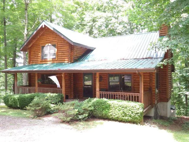 Seasonal Lake View! If youve always wanted a log home, youre sure to enjoy this Jimbarna beauty! This beautiful home is located at the top of the hill of Caney Creek Boat Ramp on beautiful Lake Cumberland (Ben Hill). Home features 3 bedrooms, 2 baths, kitchen with hickory cabinets- appliances-jenn aire range, large dining room/living room combination with 2 story open beamed ceiling & show cases a beautiful fireplace & hardwood staircase. House has central heat & air, hardwood floors, master suite with Jacuzzi tub, full walkout basement & more! Out back offers a beautiful setting with a sneak peak at Lake Cumberland & beautiful seasonal lake view that can be enjoyed from the large screened back porch with adjoining open barbeque deck.