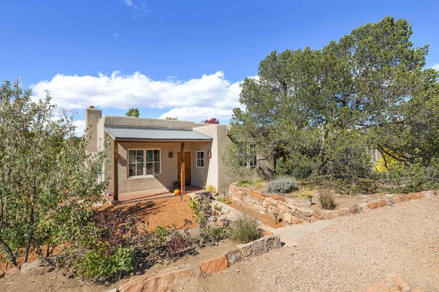 This beautiful light filled home, designed by renowned architect Beverly Spears, is an absolute charmer! This 2 bedroom, 2 bathroom home plus one bedroom, one bathroom casita features a thoughtful floorplan, radiant heat, a large owner's suite, 2 fireplaces, 2 mini splits (in the casita), beautiful fenced in outdoor spaces, mature landscaping and a stunning portal. 2 separate entrances and fenced in outdoor spaces allow for great versatility as well as an income producing opportunity. Conveniently located in a private cul-de-sac; close to the hospital, etc . . . yet in a country like setting, all on half an acre! A rare find not to be missed. (There is a lease in place for the 2 bedroom with a wonderful Tennant until July 15th - easy to show!)