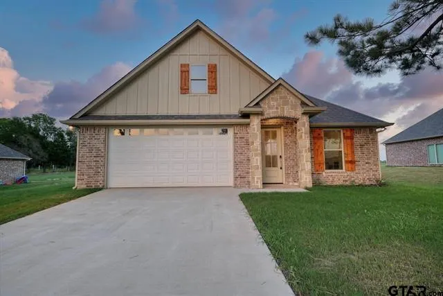 Stunning new construction in Lindale ISD! Welcome to High Country Acres. This 3 bedroom, 2 bath home also has a dedicated office or flex space and an attached 2 car garage. The open main area has a dreamy kitchen with granite countertops, beautiful backsplash, walk in pantry and stainless steel appliances. The large island has room for seating and is open to the dining and living area which has a wood burning fireplace and access to the back covered back patio. The split floorplan allows the owners suite privacy with a spa like bath. Features include double sinks, soaking tub, walk in tile shower with glass enclosure and a walk in closet. The two additional bedrooms share a full bath with a tub/shower combo. Homes extras include hard flooring and blinds throughout, sprinkler system and some landscaping, all situated on just over half and acre.