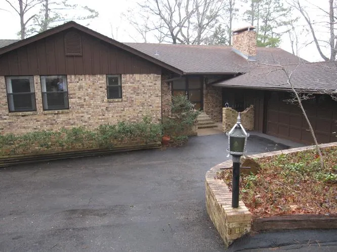 Waterfront Priced to Sell! Big Price Reduction! 4-3-2 plus extra 1/2 bath in mud room on lakeside. 2 B/R up and 2 B/R down. Large living room w/ F/P plus huge gameroom (den down with built in "cheers" bar w/standard refrig (remains). Property needs updating as Seller is aware, but WOW what good bones this waterfront has! Boathouse w/electric lift, 2008 Roof. Appx 150' of water frontage (1 1/2 lake lots) One dues of $184. Appraiser measured at 3335 sf.