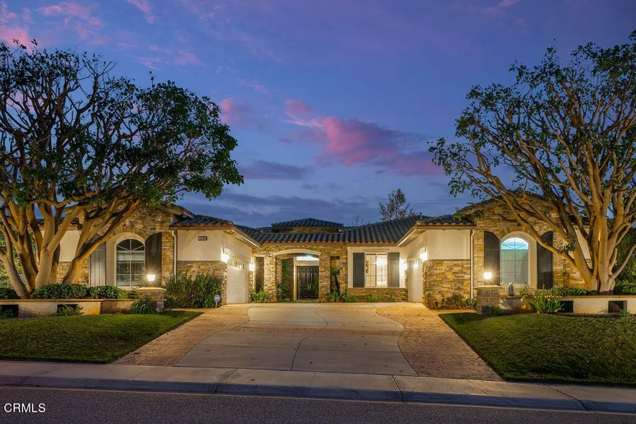 This most sought-after floorplan in prestigious gated Moorpark's Country Club Estates. Spacious one-story view executive home is situated on half acre lot. As you enter the double door entry you will immediately be greeted by the spacious formal living room which features stunning views into the backyard. The living room has large baseboards and crown molding and a cozy fireplace. The spacious kitchen features a built-in refrigerator, stainless stovetop, double oven, and microwave with premium granite countertops, and plenty of cabinet space. Featuring a state of the art Control4 home automation system, there are 4 bedrooms and 5 baths in this sprawling single story home tastefully designed with gracious living in mind. On the opposite end of the home is the immense master suite, complete with sitting area & patio access, as well as an enormous master bath with sunken tub & glass block shower, his and her sinks and built-in vanity, stone flooring and countertops, with a luxurious built walk in closet. Each of the additional bedrooms have their own ensuite bathrooms. The lovely yard is setup to be perfect for entertaining with its stamped concrete patio and built in BBQ. There aren't any neighbors behind you so you can enjoy gazing out and watching the sun set. There are soaring ceilings throughout. Large laundry room with sink. A 4-car garage tops off this lovely offering. If you are in the market for a single-story home...put this one on the top of your list!!!