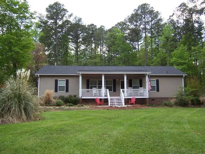 Very nice and well kept doublewide home and unique detached second kitchen/entertainment area. Home has 3 bedrooms and 2 baths, kitchen with island, dining area and living room. Lot is beautifully landscaped with plantings, fencing and goldfish pond. Detached carport and storage building. 9 ft. ceilings, all sheet-rock. Second kitchen/entertainment has deep fat fryer, gas grill, charcoal grill all built in with huge hood fan, refrigerator, bar -GREAT FOR ENTERTAINING!!!