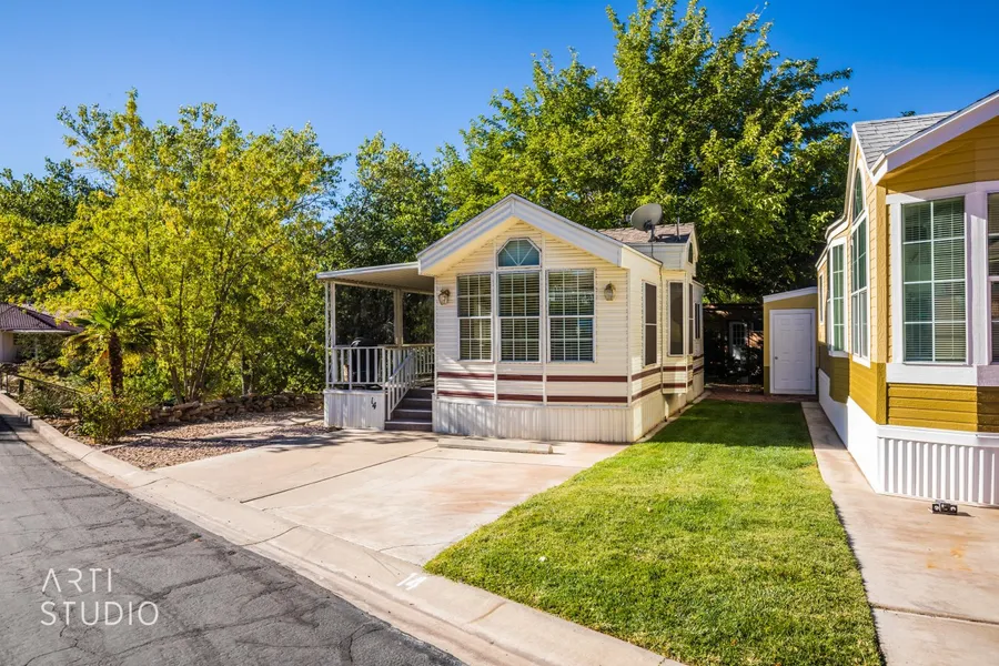 Ask about the Owner Financing Available on this home. Harrisburg Estates is a sought after location to live. Stylish single-wide 2 bed 1 bath with Washer/Dryer. Enjoy the beautiful view while sitting outside on the oversized covered patio. Cute backyard has a huge shed that has A/C and is fully insulated. Close to the clubhouse which has exercise room , pool and extra parking. Private Financing avail. State Bank of Southern Utah can help with a loan 25% down required. Ask for Darrin Larson 435-635-6300