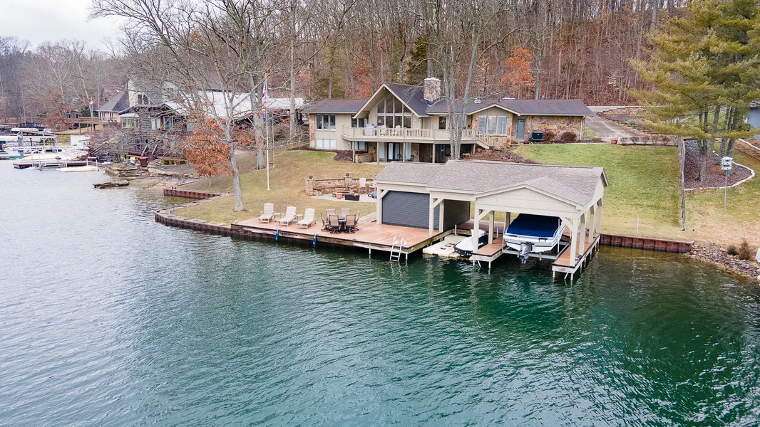 Sitting on the dock of Grandview Lake watching the time roll away! UNBELIEVABLE main body lake-living experience, such a rare buying opportunity on main body of Grandview Lake, Arguably the best lot on the water w/the amount of lake frontage & backyard space, Over 3000 sqft of completely updated living space, GOURMET KITCHEN, all bathrooms completely updated, Outdoor entertaining space second to none, wrap around deck, paver patio w/firepit, custom trek dock sits on the water, covered patio lakeside with kitchen/bar area, lifts for boat, jet-skis all custom trek material, no-expense spared, STONE exterior, vaulted great room stone fireplace, kitchen w/breakfast table & large dining area all looks out to amazing lake views, walkout basement.