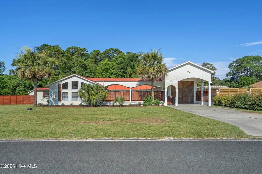 Own your private Mediterranean Villa Courtyard Retreat and Separate Guest House!! Welcome to your unique private oasis a stunning Spanish-style Villa tucked away in tranquility, yet designed for entertaining and modern living. This courtyard masterpiece blends timeless Mediterranean charm with practical versatility. Enter through a serene, gated courtyard that serves as the heart of the home. You'll be immediately drawn to the artisan patio, complete with a real wood-fired pizza oven, perfect for al fresco dining under the stars. The main residence features two spacious bedrooms and two full bathrooms, including a luxurious primary suite. A flex room off the primary suite offers endless possibilities: transform it into a nursery, playroom, home gym, or a creative art studio. The detached guest casita (ideal as a mother-in-law cottage) offers ultimate privacy with its own entrance, full kitchen, and full bathroom, making it also perfect for visitors, extended stays, or remote work. Another separate structure overlooks the courtyard, ideal for a home office, art space, or extra storage. And that's not all - The oversized garage, which can easily store boats and motorhomes, has built-in shelves to ensure space for your tools, hobbies, or weekend projects. Surrounded by lush landscaping and soothing architecture, this home is a rare blend of serenity and functionality a true peaceful retreat with room for life, work, and celebration. Come experience the warmth and character of Mediterranean Villa living. This one-of-a-kind courtyard home invites you to slow down and savor the moment and with a pool addition in the courtyard it would be a masterpiece. Just a 5-minute drive to beautiful Holden Beach and the Intracoastal Waterway's public boat rampperfect for beachgoers and boating enthusiasts alike. If you are looking for a truly unique property, look no further! This property is a must-see in person. Photos and videos simply don't do its beauty justice
