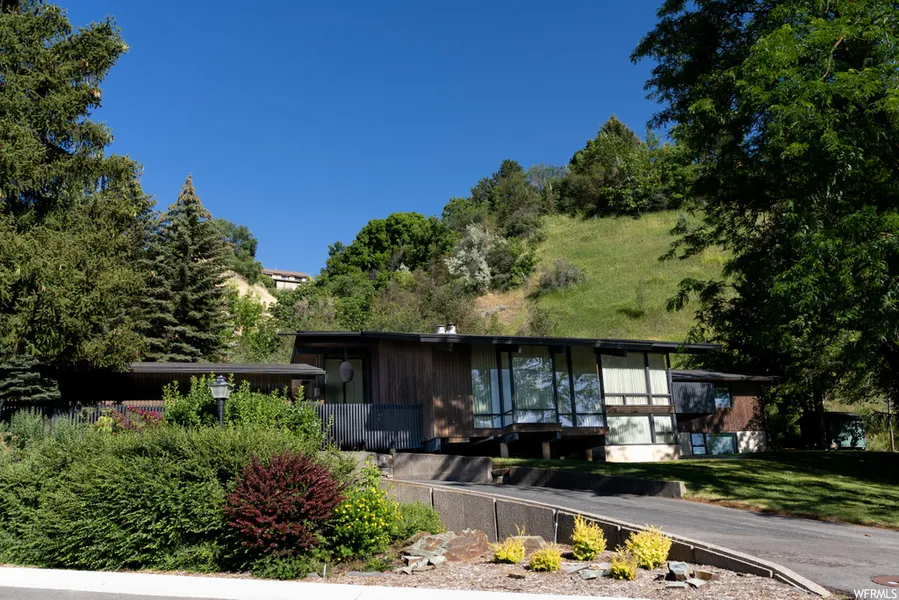 Custom mid century home (Glen Aston Lloyd architect) is awaiting a new owner. This "Hidden Village" gem, feels like living in the woods, yet filled with light. Views of Logan, open floor plan, sensible room size as well as impeccable lines throughout allow freedom as well as comfort, quiet, and peace. In this clean, yet dynamic abode you'll experience serenity and peace. Don't miss this opportunity to feel the joy this property exudes. Ample storage throughout, including kitchen pantry, and basement fruit room. Agents please schedule showings through the listing agent, and showing time. Square footage is taken from County Records and private measurements. Buyer is advised to get their own measurement. Hot tub is not functioning and staying with the property
