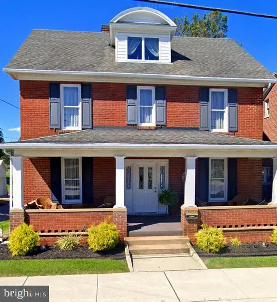 This charming all-brick colonial is ready for downtown country living!. Interior offers living room with chair and crown moldings, formal dining room with beamed ceilings, country kitchen with breakfast room and breakfast bar. Upper level has 3 spacious bedrooms and stairs leading up to the floored attic, perfect for storage! Bonus livable square footage in the partially finished basement which includes a family room with custom built-in cabinetry, shower room, laundry room, and walk-out stairs to the rear. Relax on the covered front porch or covered back porch overlooking the nice level yard and 3 car detached garage. This also, includes the adjoining lot in the back for a total of 0.714 acres. This won't last long... Come take a look!
