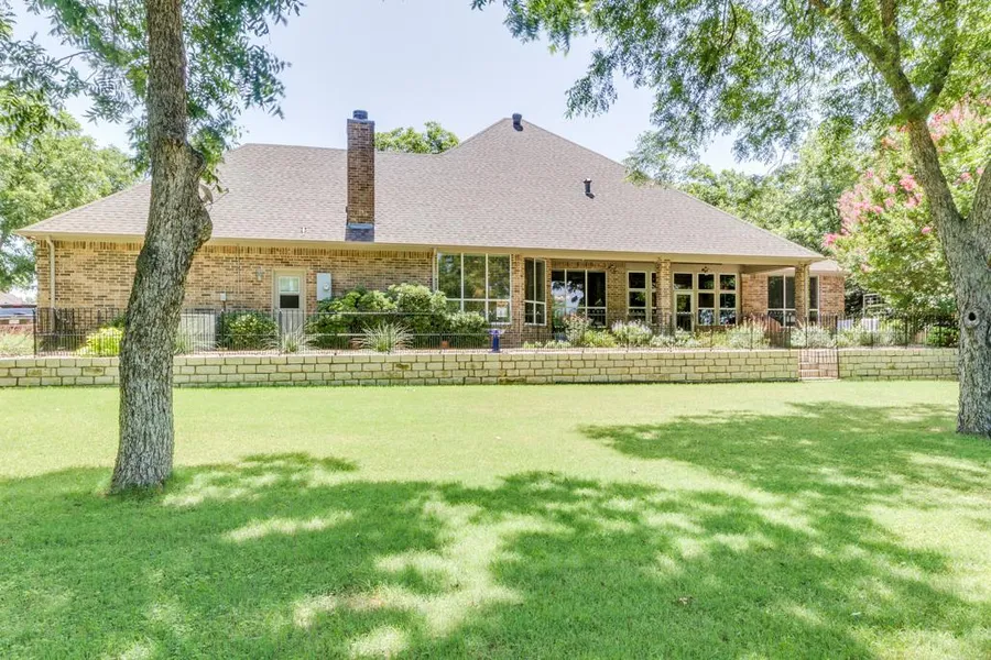 Beautiful home on the golf course! Huge circular drive. Open floor plan with beautiful stone fireplace in living area. Formal dining and kitchen with breakfast bar, granite counters, tumbled marble backsplash, island and built-in desk. The spacious master bedroom has built in cabinets, jetted tub, separate shower and walk-in closets. Split bedroom arrangement. Nicely landscaped with rock work and tile floor covering the patio.